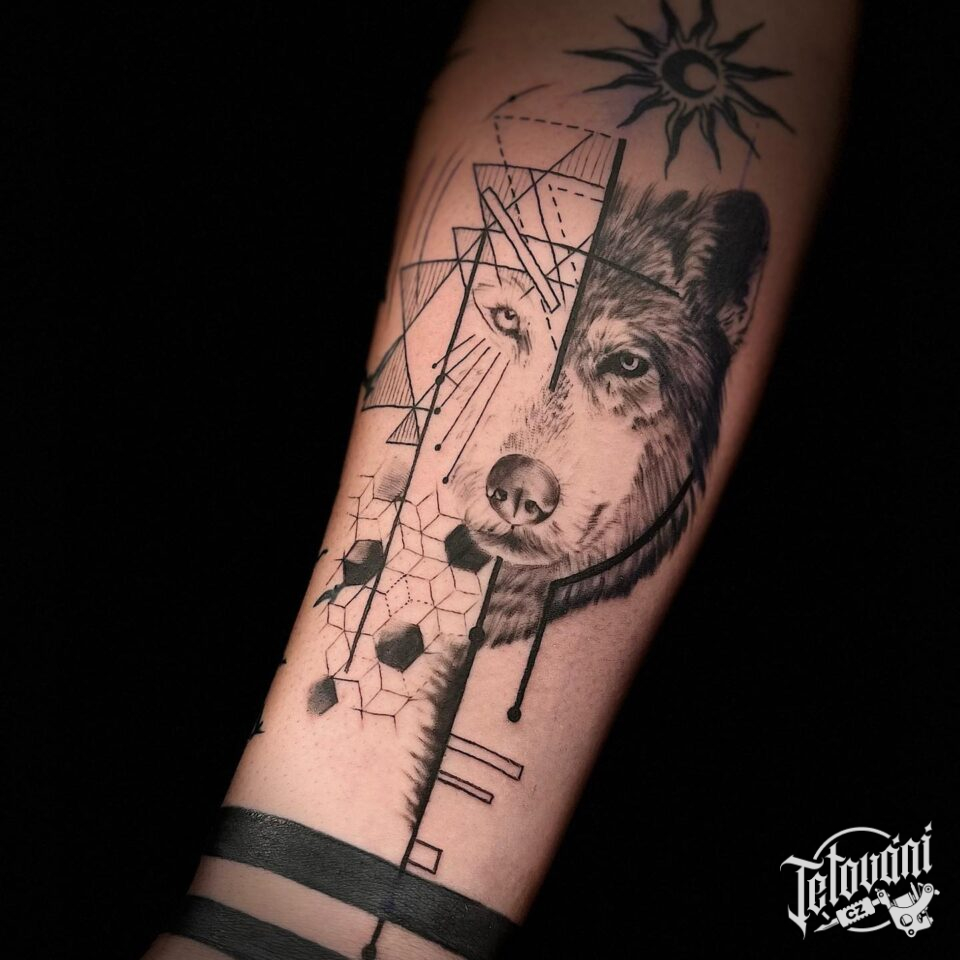 Tetování zvíře, vlk na předloktí
