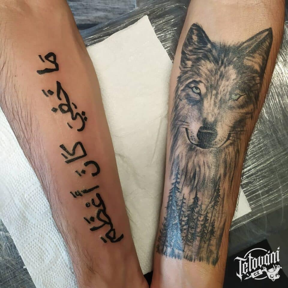 Tetování zvíře vlk na předloktí