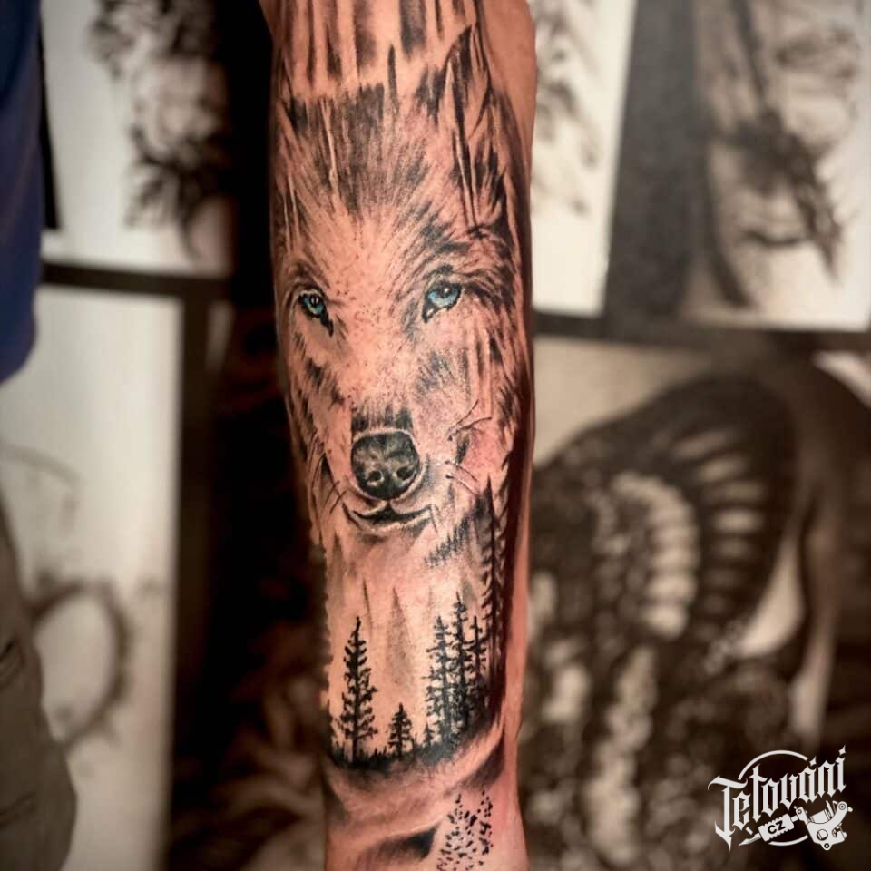 Tetování zvíře vlk na předloktí