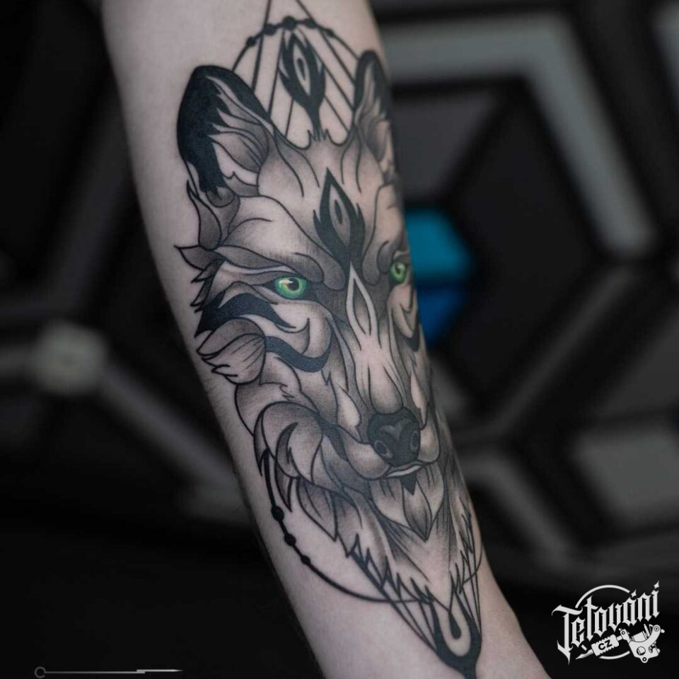 Tetování zvíře, vlk na předloktí