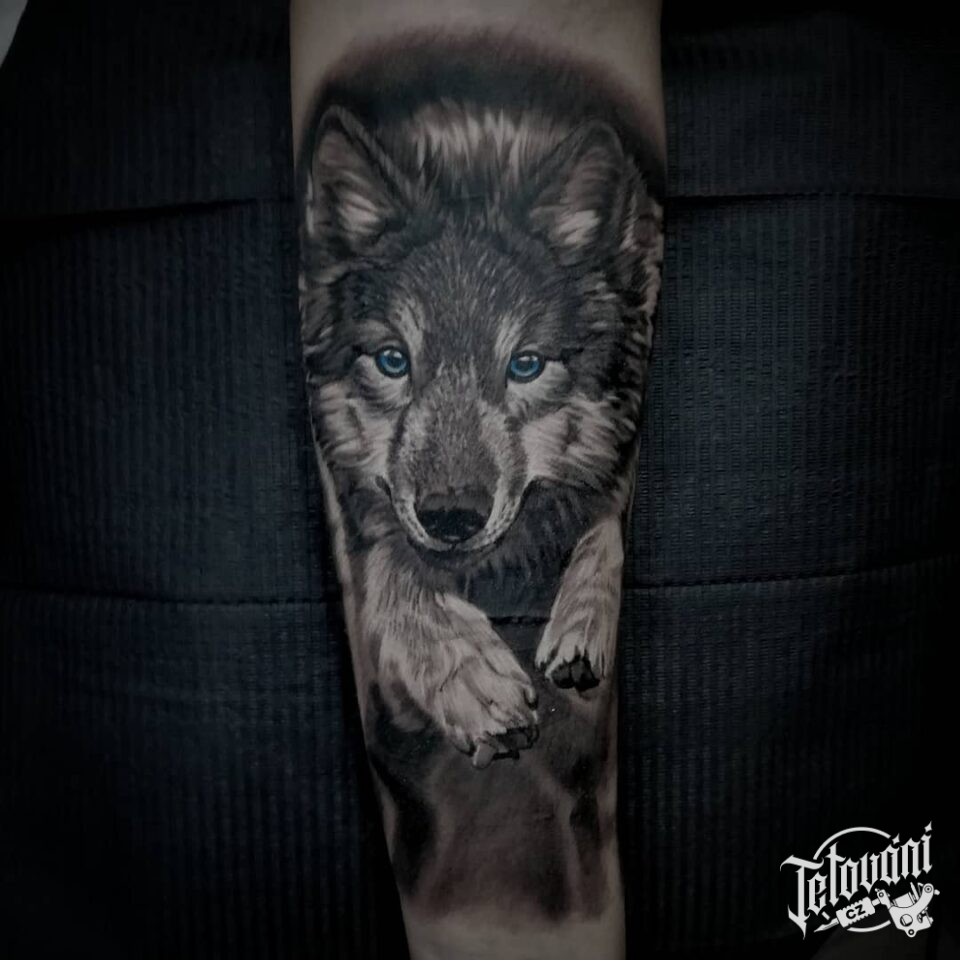 Tetování zvíře, vlk na předloktí