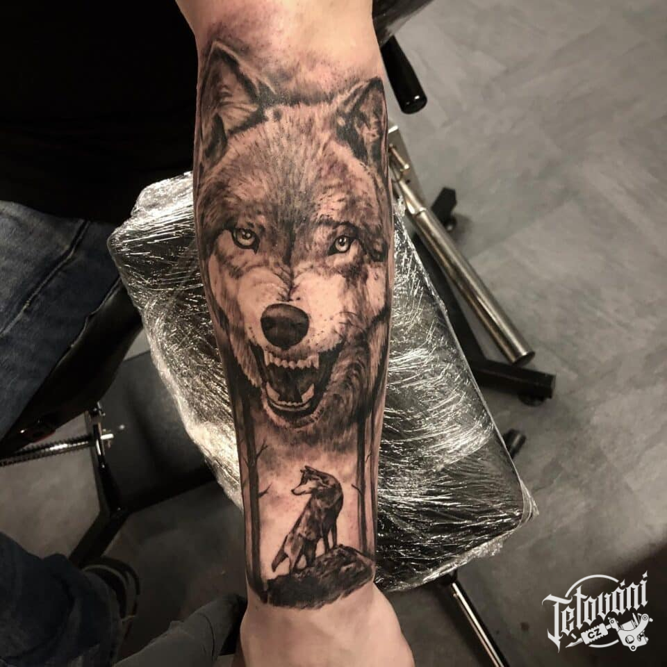 Tetování zvíře, vlk na předloktí