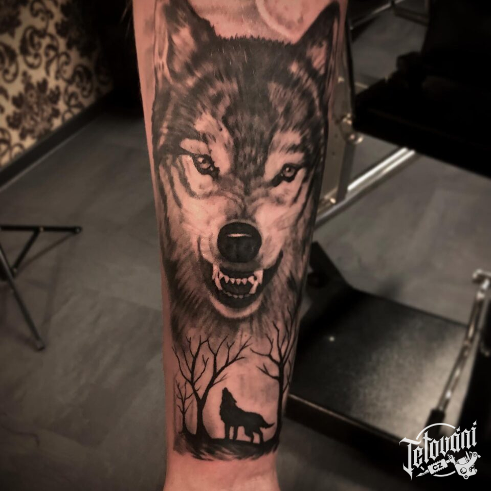 Tetování zvíře, vlk na předloktí