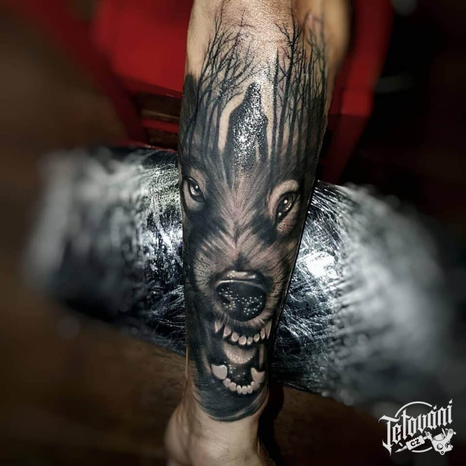 Tetování zvíře vlk na předloktí