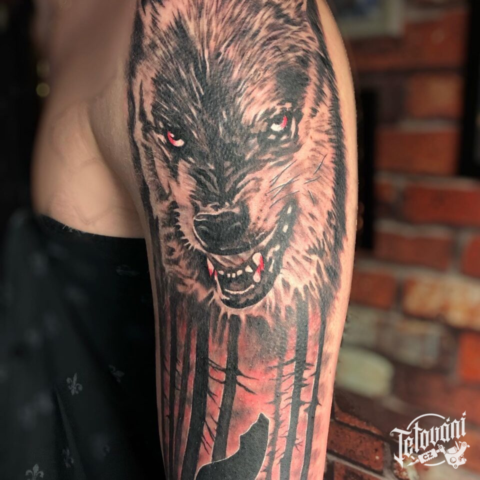 Tetování zvíře vlk na rameno
