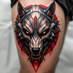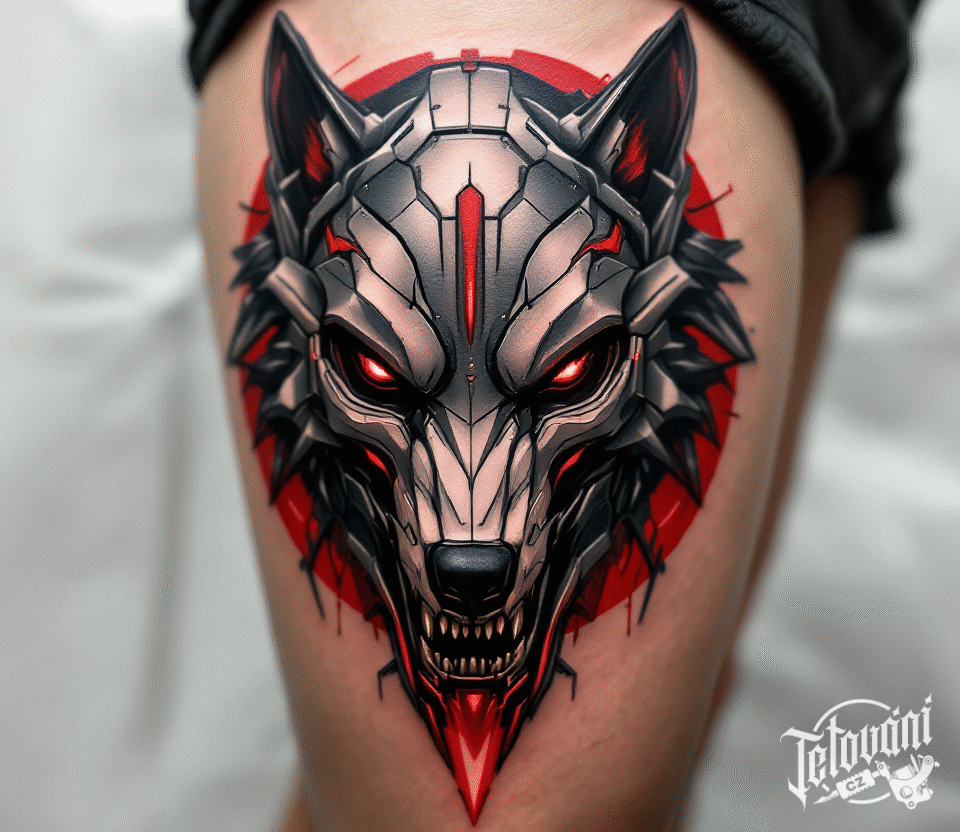 Tetování zvíře, vlk na stehně