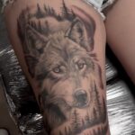Tetování zvíře vlk, příroda les na stehno