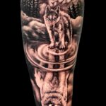 Tetování zvíře vlk, příroda, les, symbol síly a života na předloktí