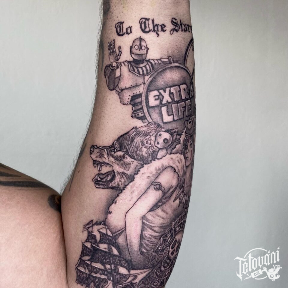 Tetování zvíře vlk, rybáři, postavičky z filmu a pohádek na předloktí