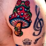 Tetování zvíře žába na mochomůrce na rameno