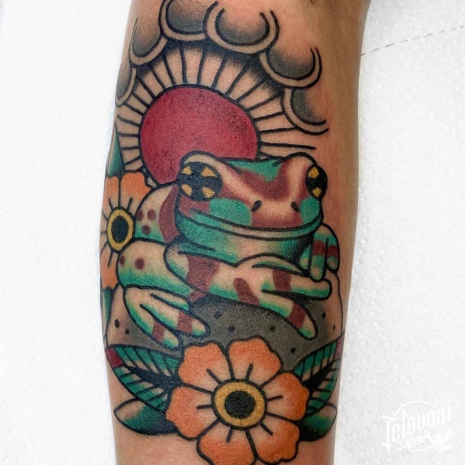 Tetování zvíře, žába na předloktí