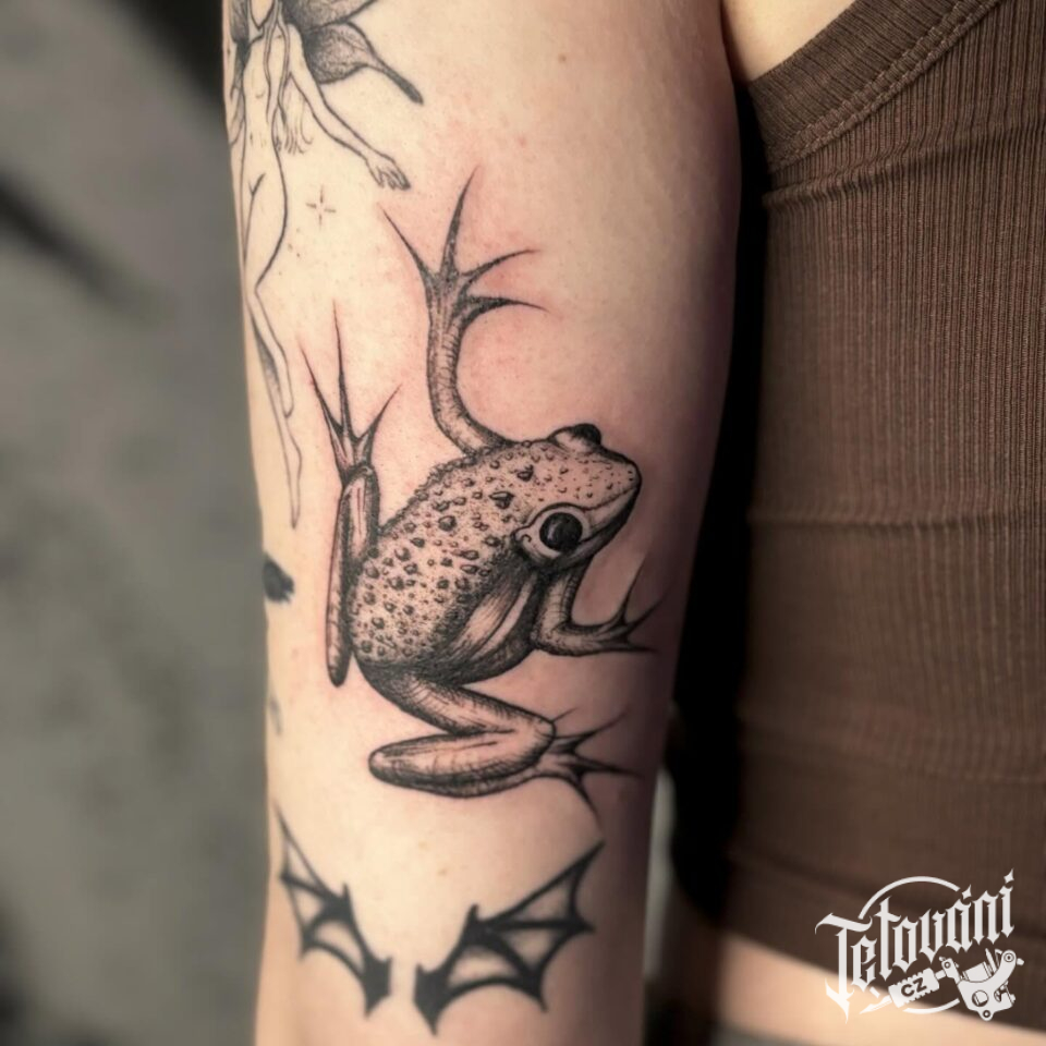 Tetování zvíře žába na rameno