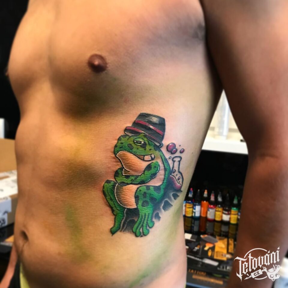 Tetování zvíře, žába na žebrech