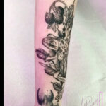 Tetování zvíře, žába s lučním kvítím na předloktí