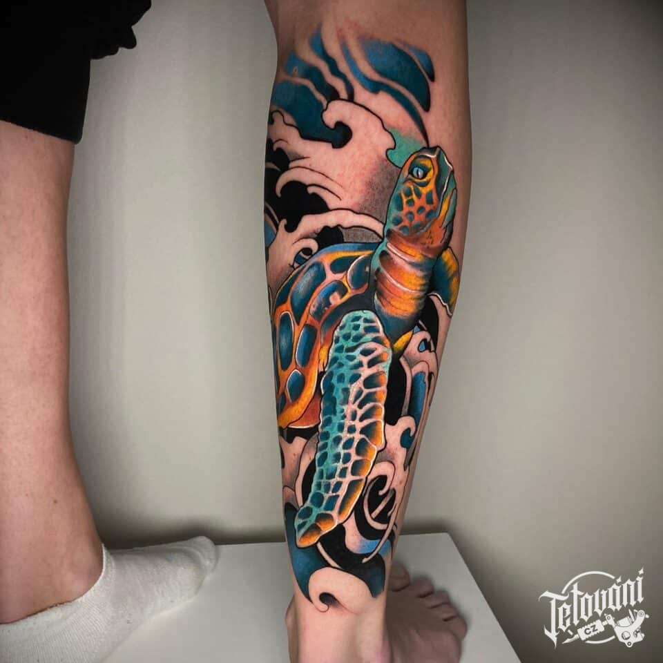 Tetování zvíře želva na lýtko
