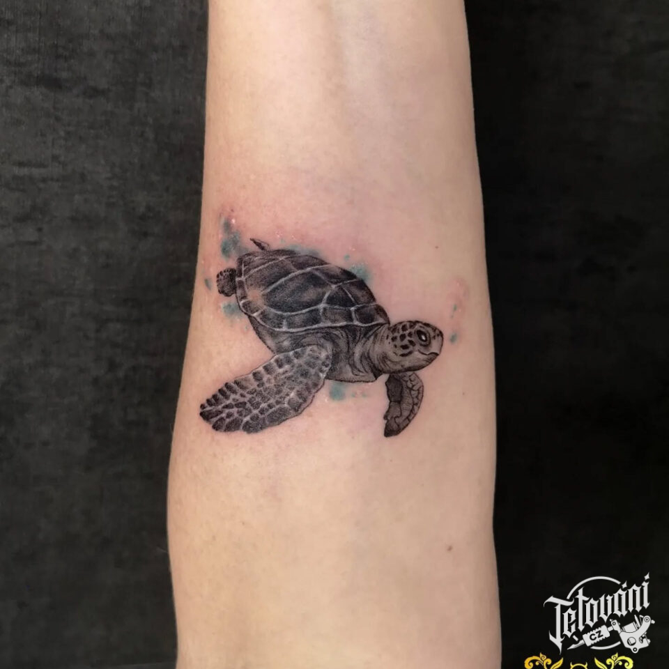 Tetování zvíře, želva na předloktí