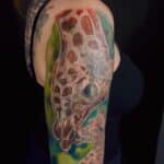 Tetování zvíře žirafa a mládě symbol rodina na ramena