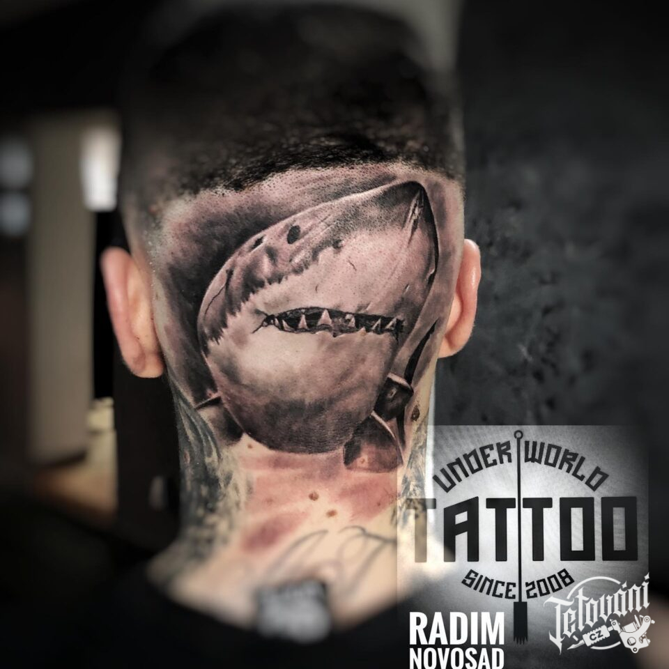 Tetování zvíře, žralok na hlavě