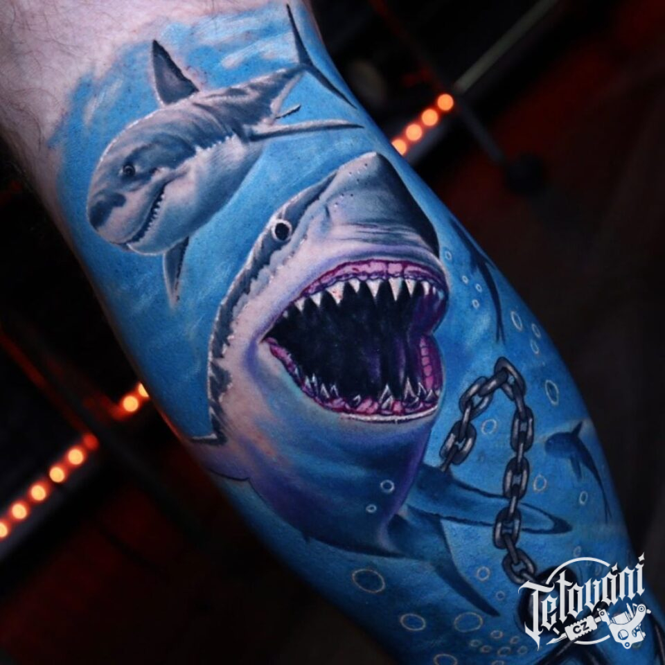 Tetování zvíře žralok na lýtku