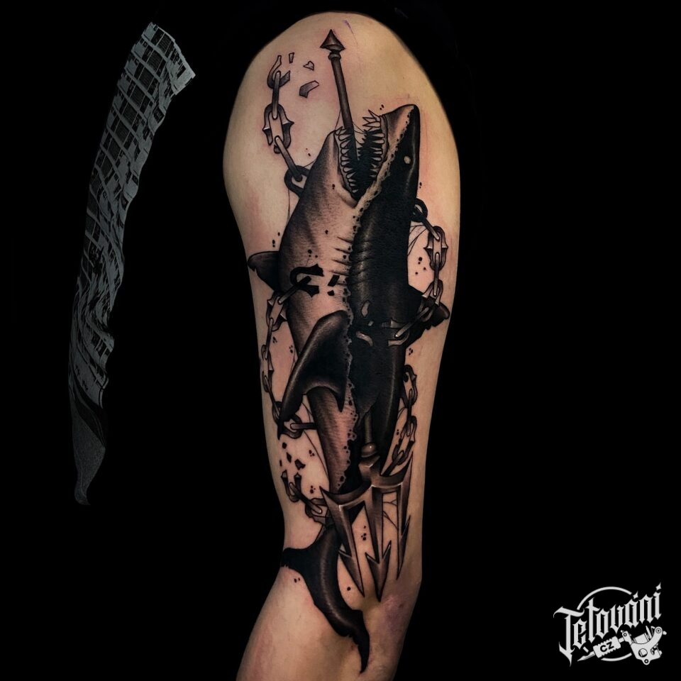 Tetování zvíře, žralok na paži