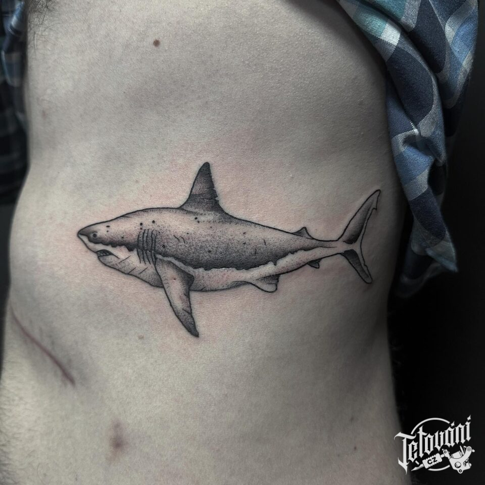 Tetování zvíře, žralok na žebrech