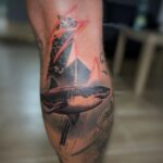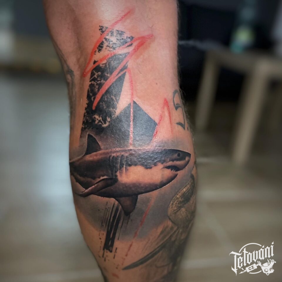 Tetování zvíře, žralok, tvary na lýtko