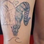Tetování zvířecí lebka na stehno