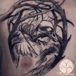 Tetování zvířecí lebka, větvě na hrudník