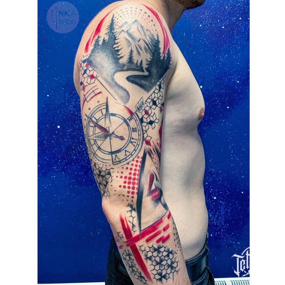 Tetováno hodiny, příroda, hory, znaky a symboly