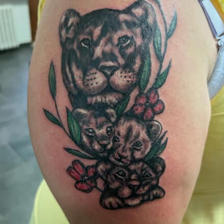 Tetvoání zvířata, lev na lýtku