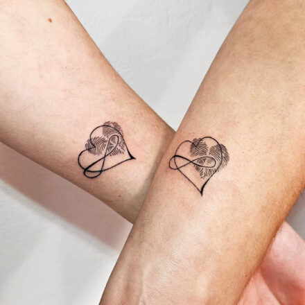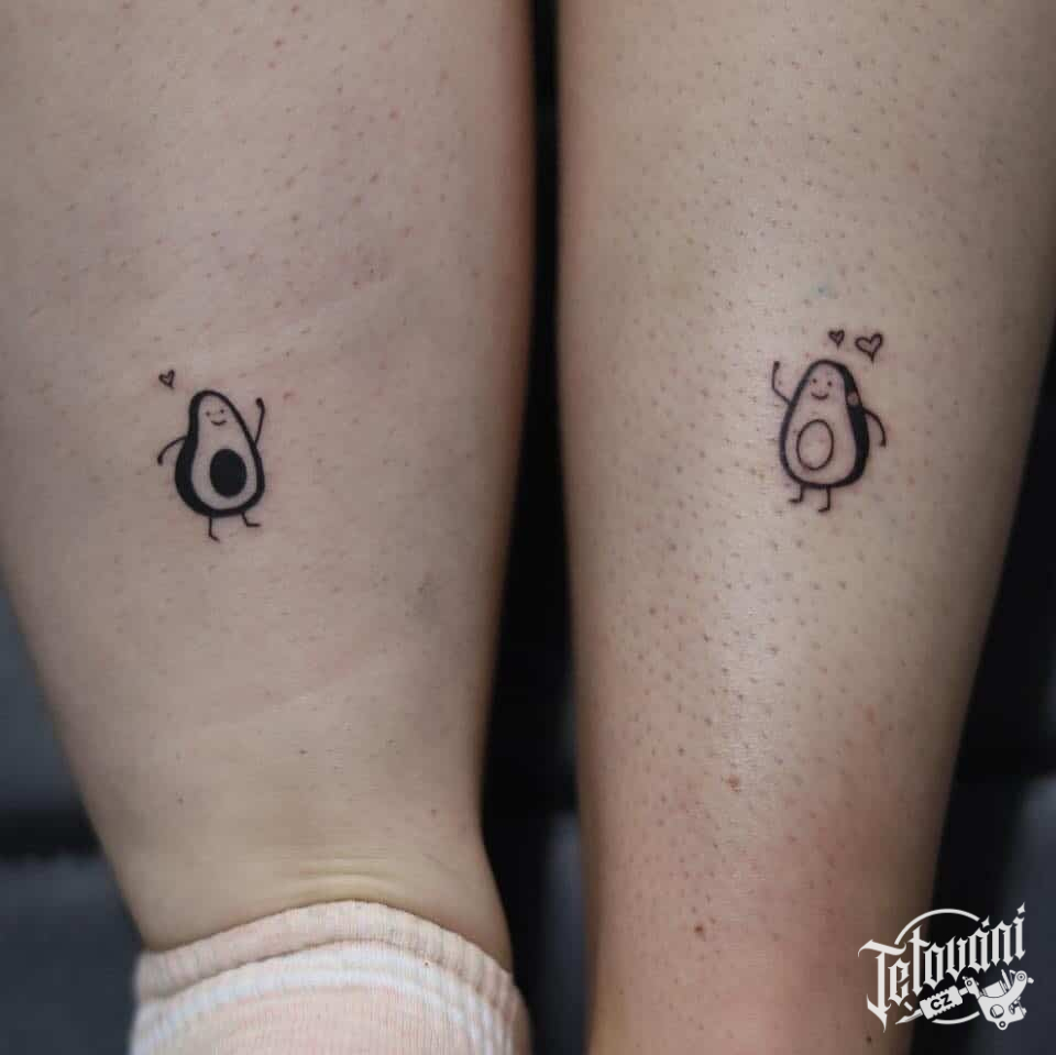 tSpolečná tetování, pro páry symbol zdraví a lásky avokádo na lýtka