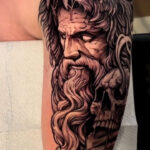 Viking, bojovník s lví hlavou a lebkou na rameno