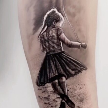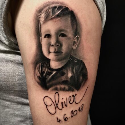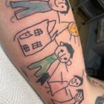 Vzpomínkové tetování kresba od dětí, postavičky, rodina, žena na rameno
