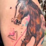 Vzpomínkové tetování kůň a srdce, zvíře na bok stehna