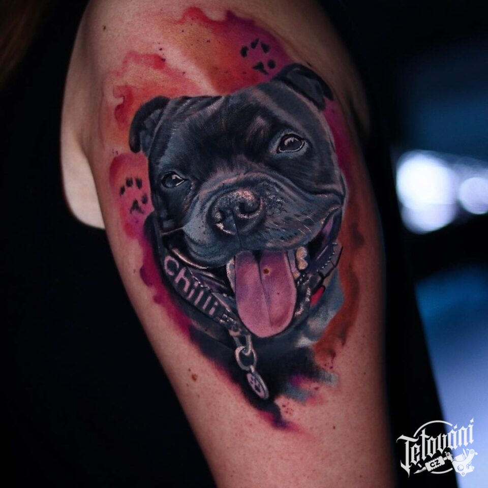 Vzpomínkové tetování, pes, portrét na rameno