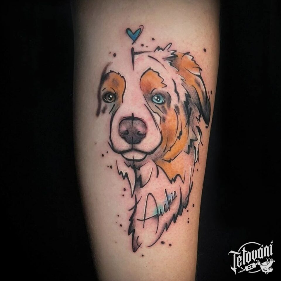Vzpomínkové tetování pes se jménem, zvíře na rameno