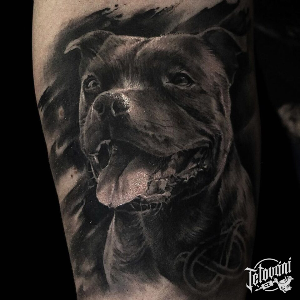 Vzpomínkové tetování pes, zvíře, portrét na rameno
