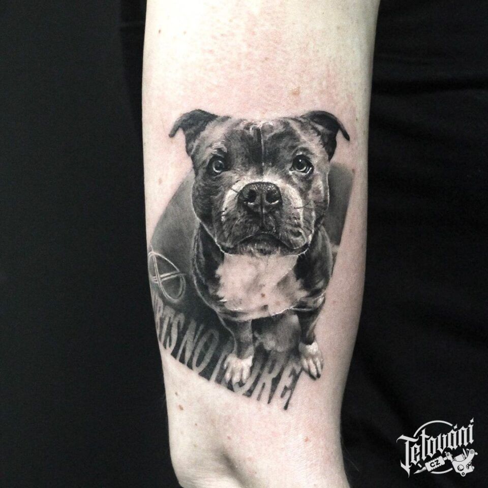 Vzpomínkové tetování, portrét pes, zvíře na rameno