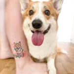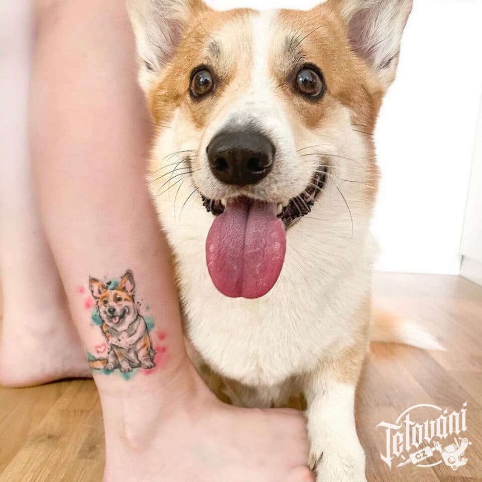 Vzpomínkové tetování portrét psa, zvíře na lýtko