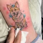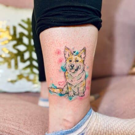 Vzpomínkové tetování portrét psa, zvíře na lýtko