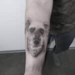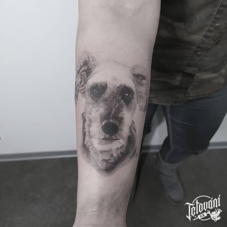 Vzpomínkové tetování portrét psa, zvíře na předloktí