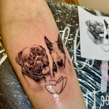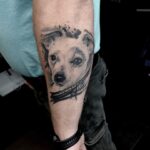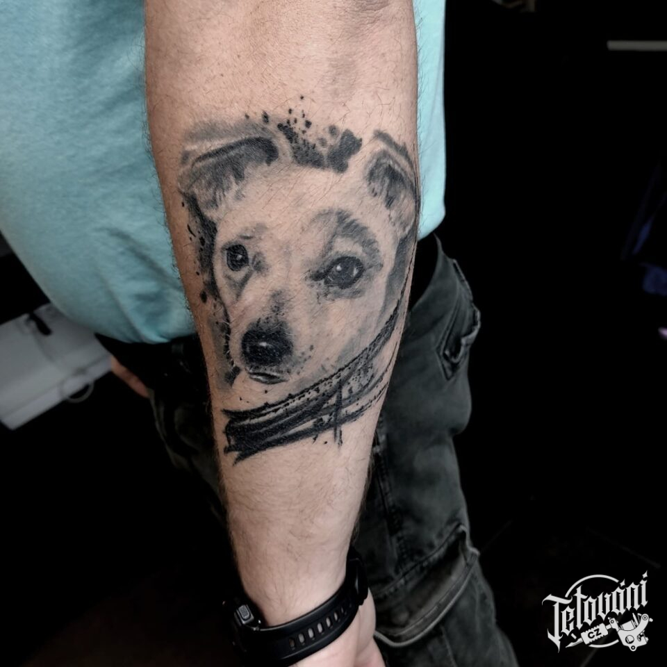 Vzpomínkové tetování portrét psa, zvíře na předloktí