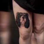 Vzpomínkové tetování portrét psa, zvíře na stehno