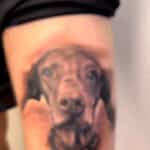 Vzpomínkové tetování portrét psa, zvíře na stehno