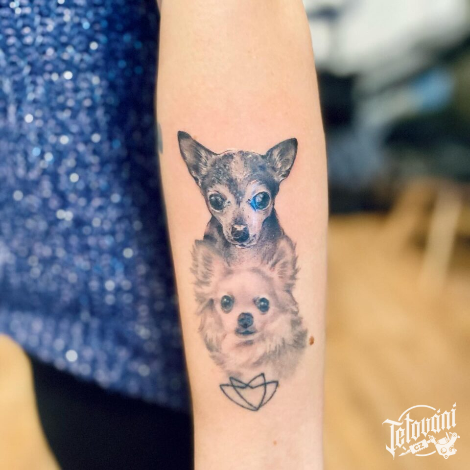 Vzpomínkové tetování portréty psů, zvířata na předloktí
