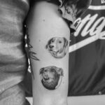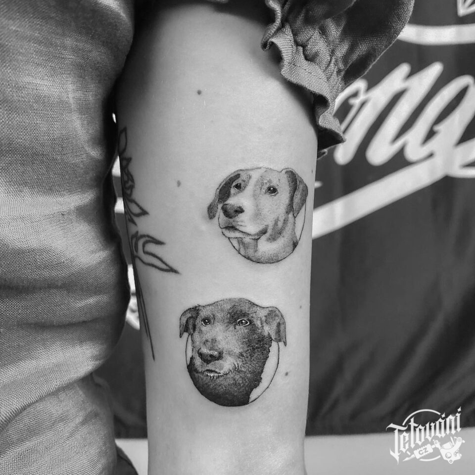 Vzpomínkové tetování portréty, zvířata psi, tvary na stehno