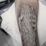 Vzpomínkové tetování ruka s datumy, nápisy na kámen na předloktí