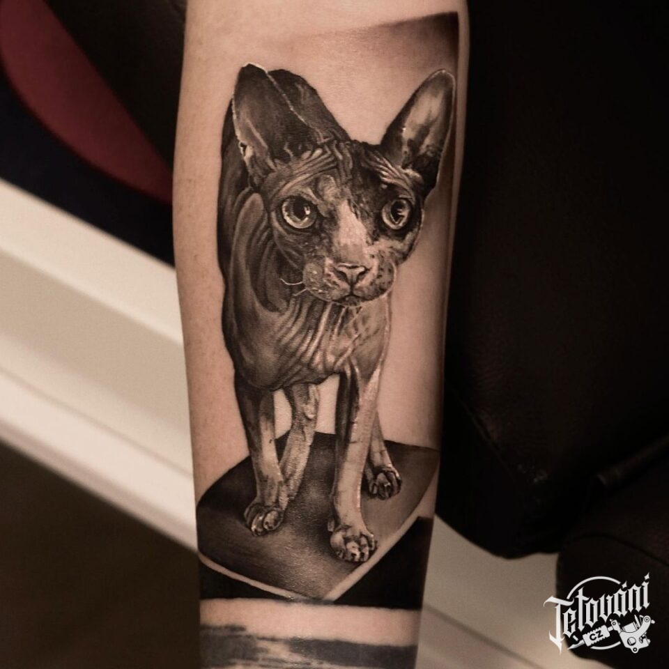 Vzpomínkové tetování, zvíře kočka, portrét na předloktí