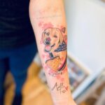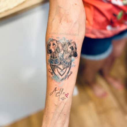 Vzpomínkové tetování, zvíře pes, jméno na předloktí