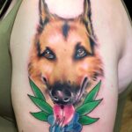 Vzpomínkové tetování zvíře pes, květiny na rameno
